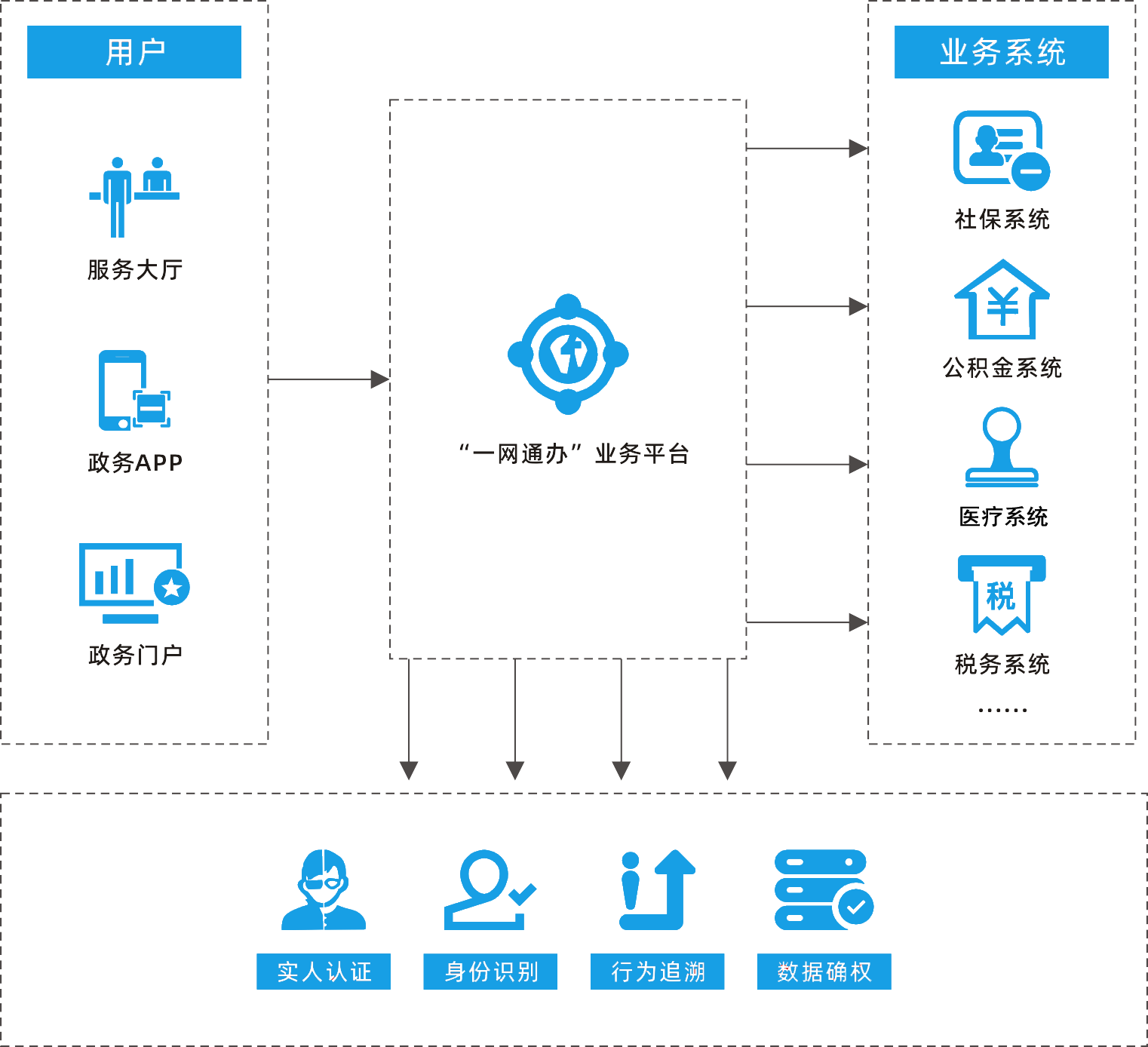 政府各部门在对法人用户服务时,需要构建一个可信数字身份的信任环境。在此环境下,法人用户采用统一的身份凭证,可在网络上开通并开展工商、税务、社保等各项业务;而政府各部门可以信任法人提供的网上数字身份,并在安全的通道内开展对法人服务。